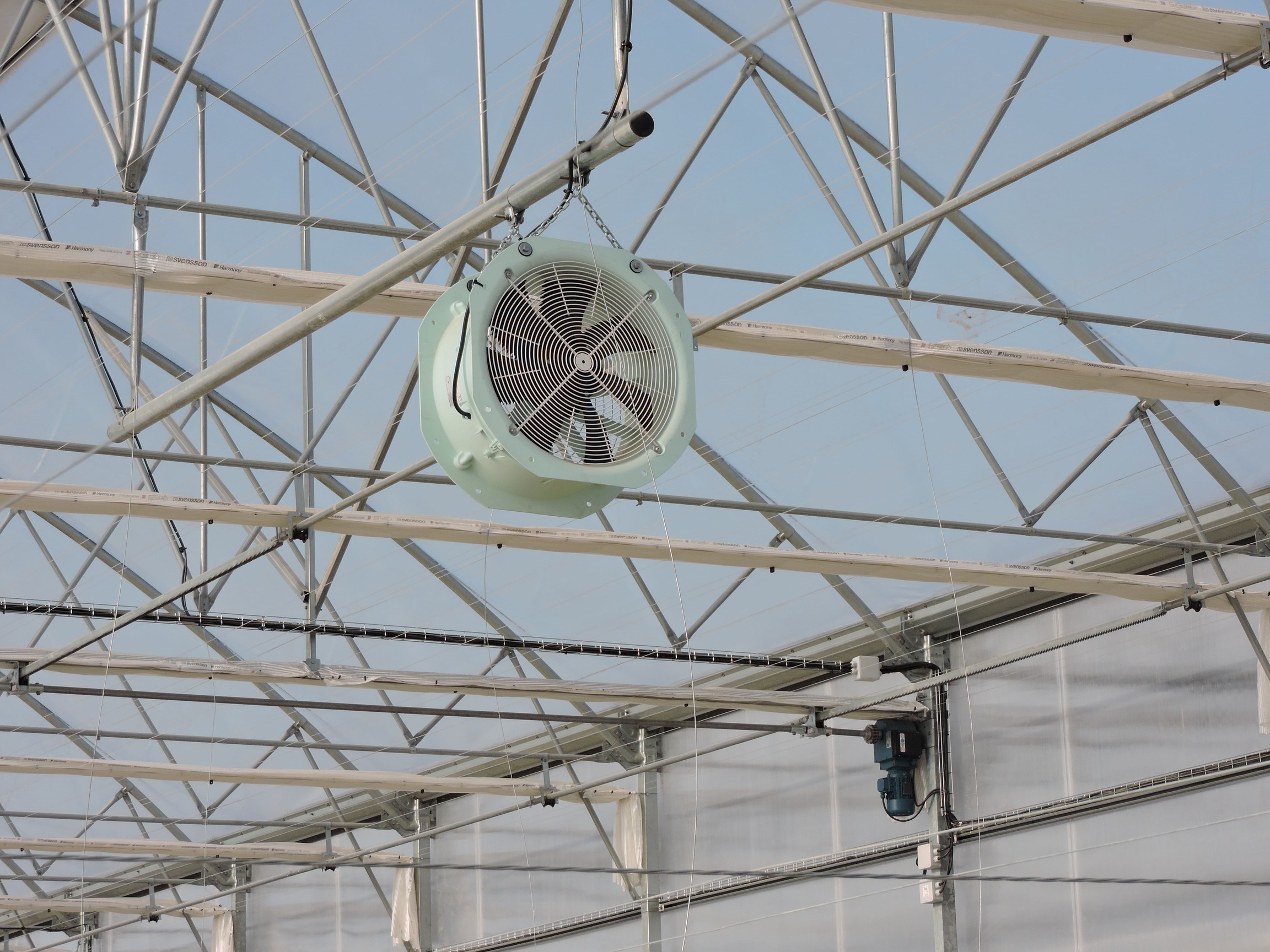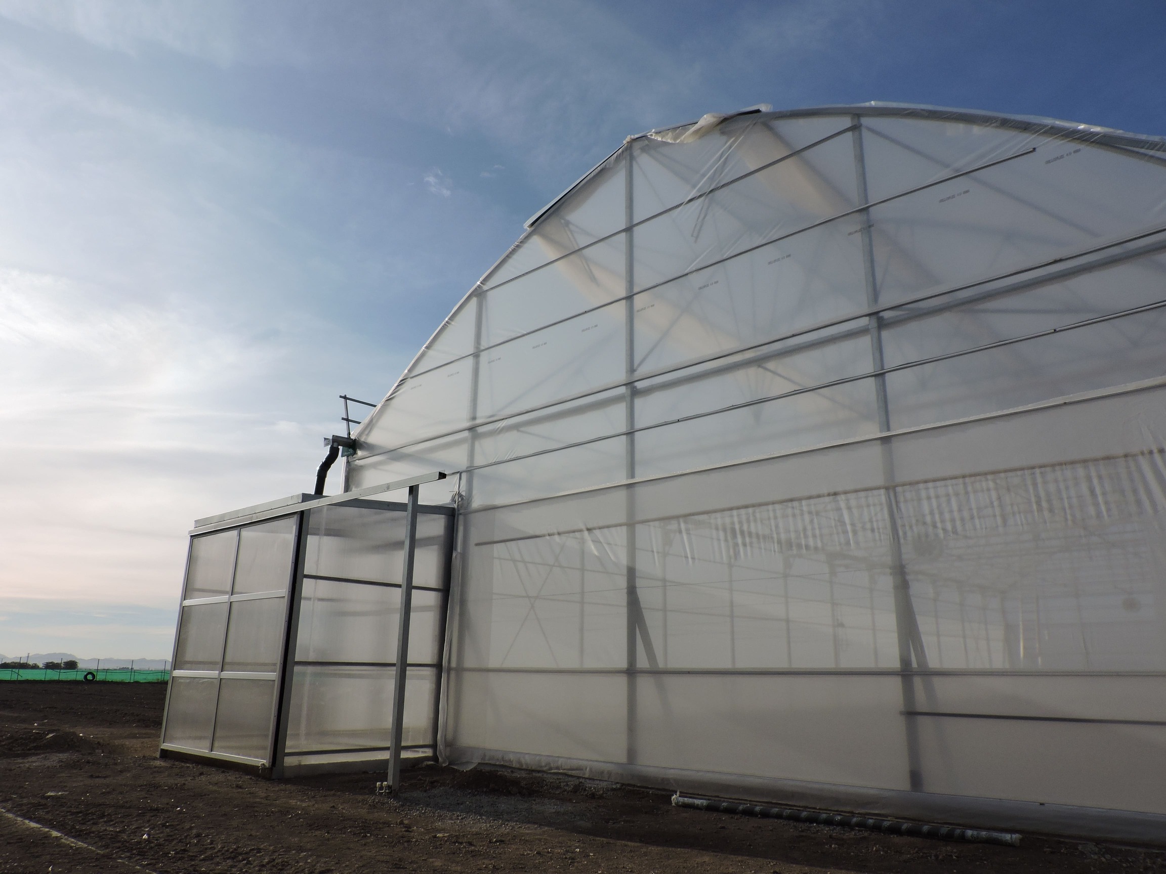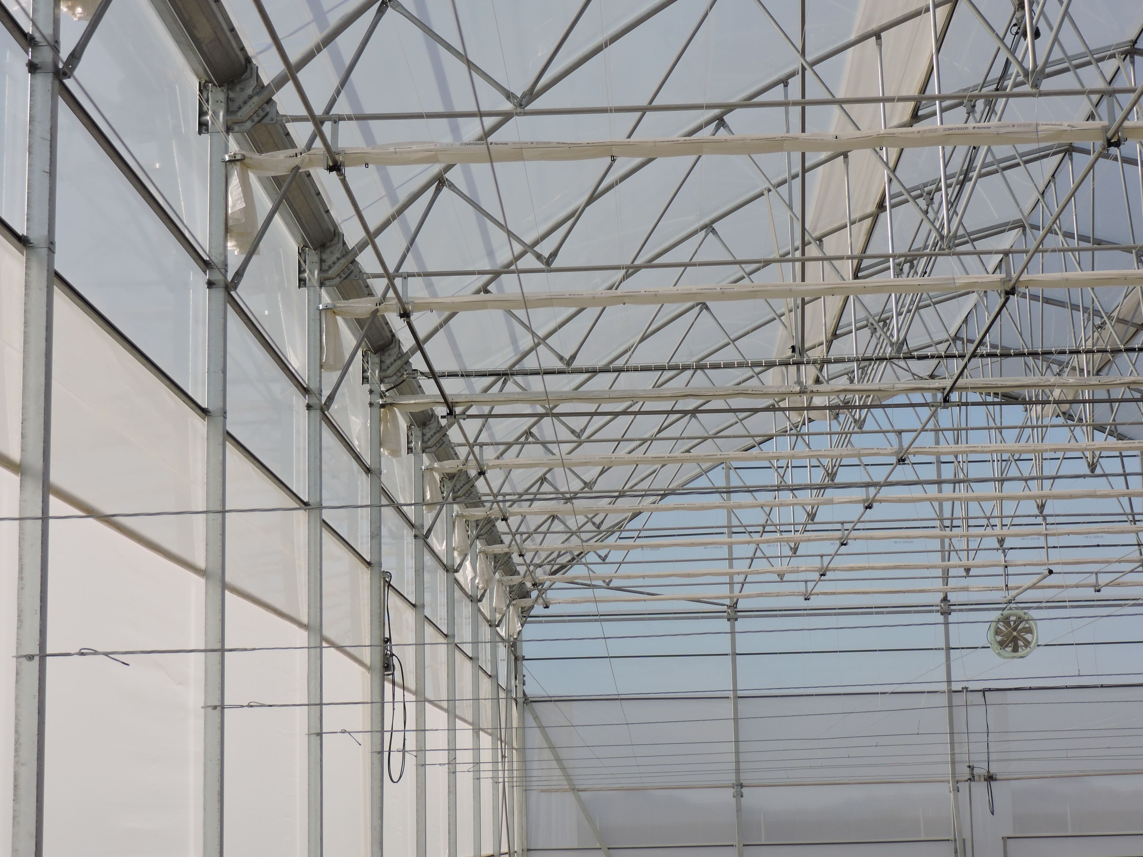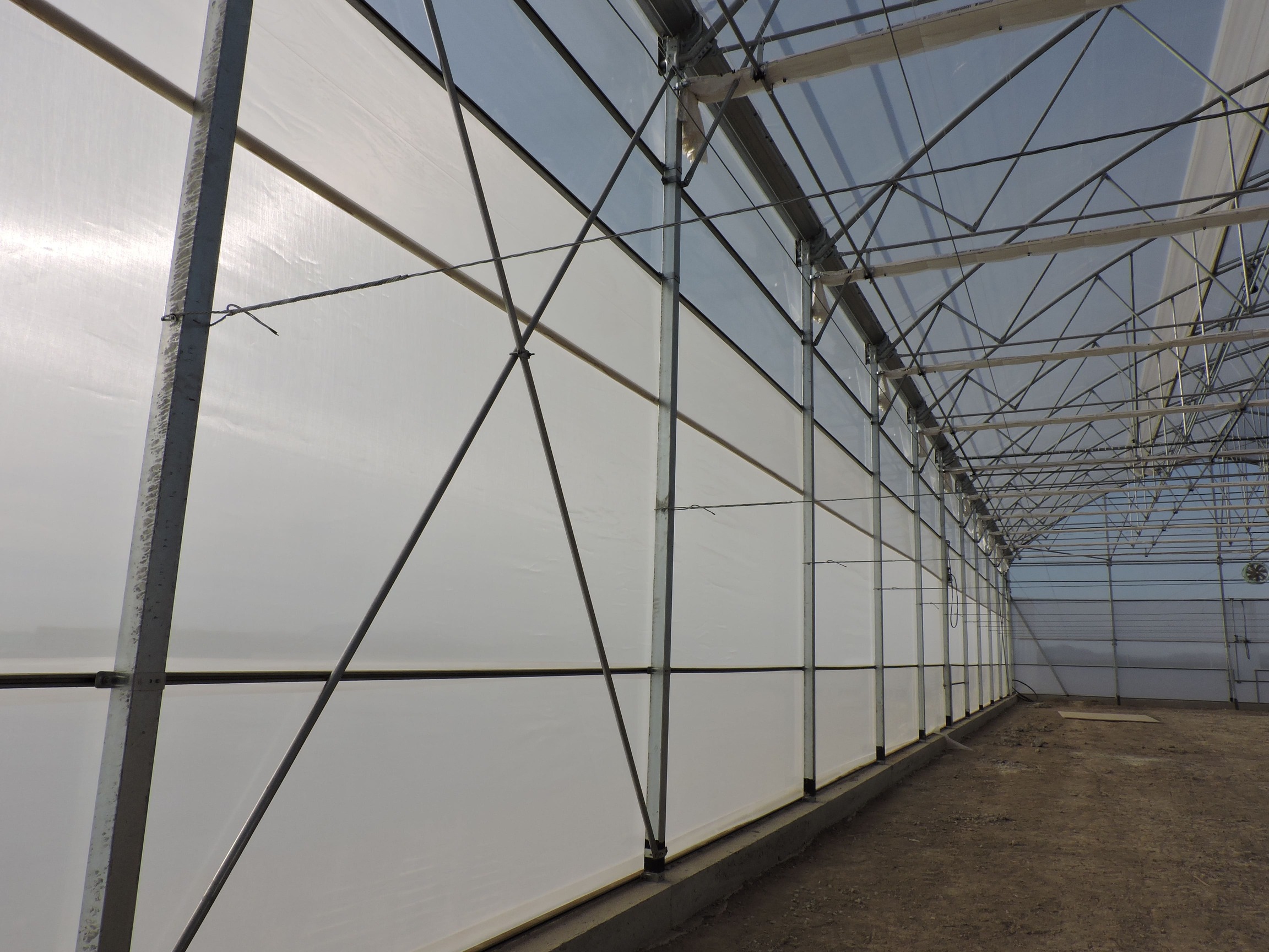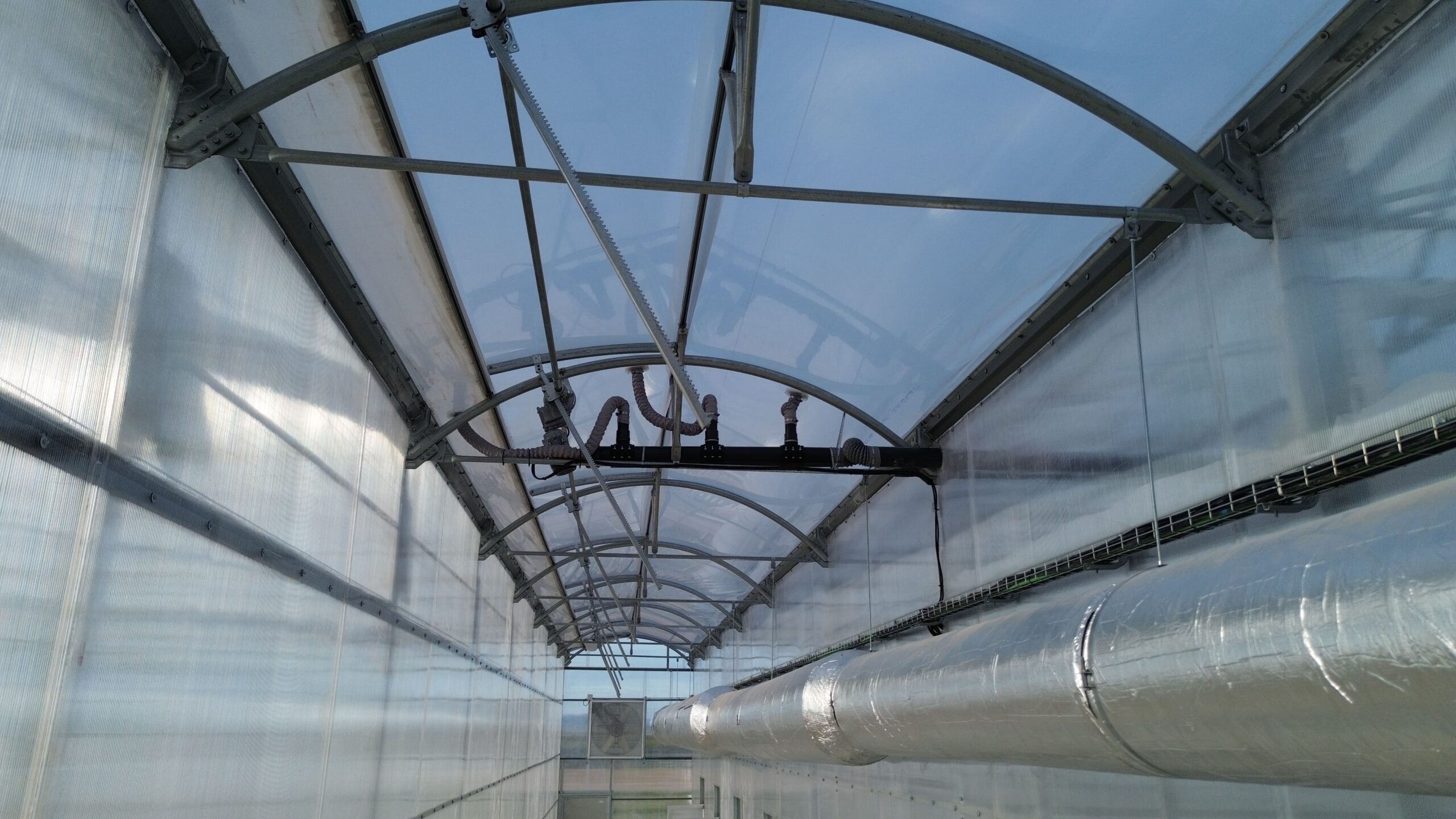 The structure has been built with high-quality materials such as galvanized pillars, gutters, capitals, arches, and trusses, ensuring long-term durability and strength. It incorporates butterfly and super-zenith ventilation in various zones, as well as perimeter ventilation in the growing area, providing precise climate control and optimal airflow.
