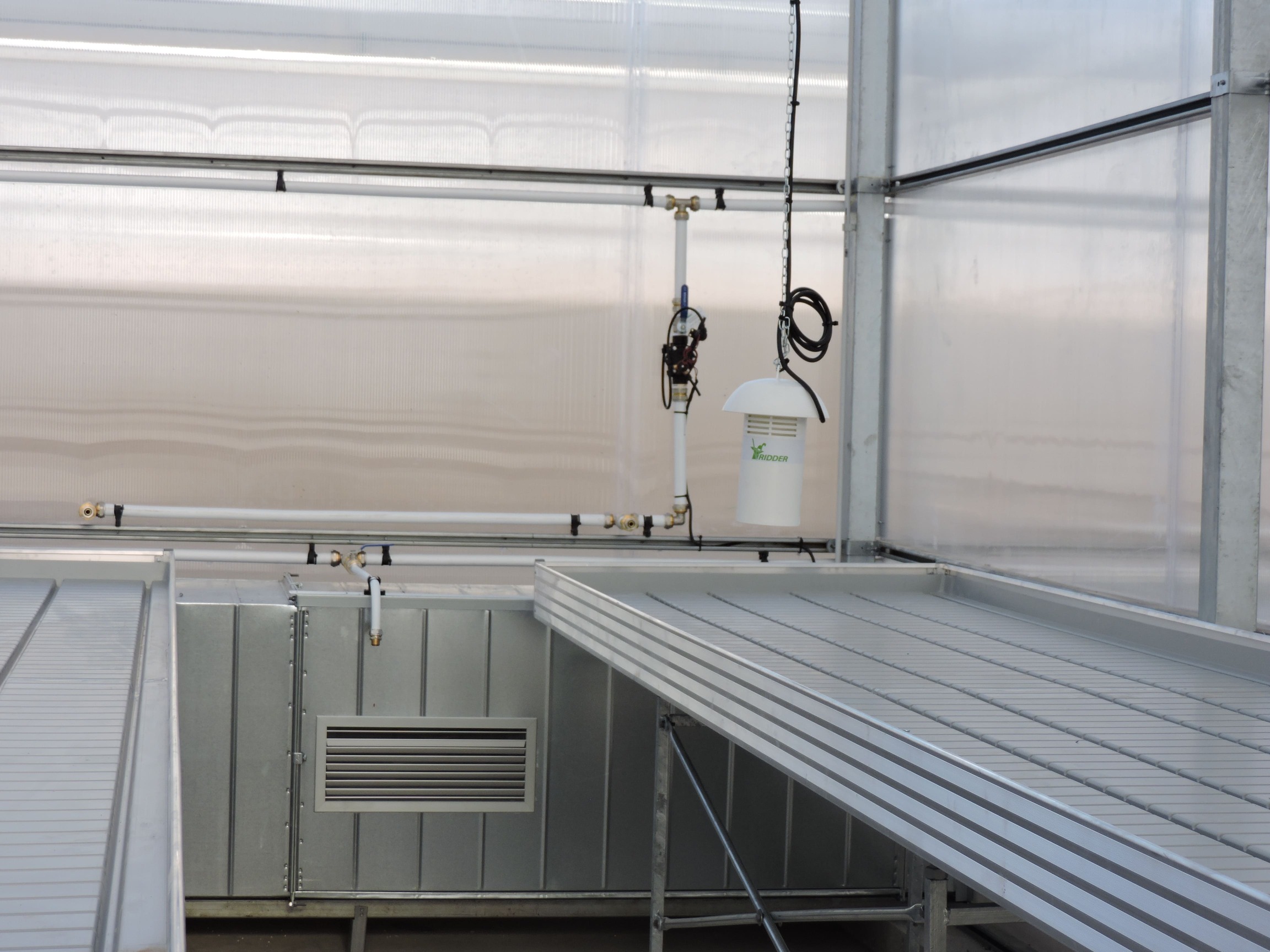 The greenhouse has been meticulously divided into three main zones: a compartmentalized growing bench area, a dedicated growing area, and a mid-area equipped with advanced agricultural tools that boost yield and help meet the client’s objectives.